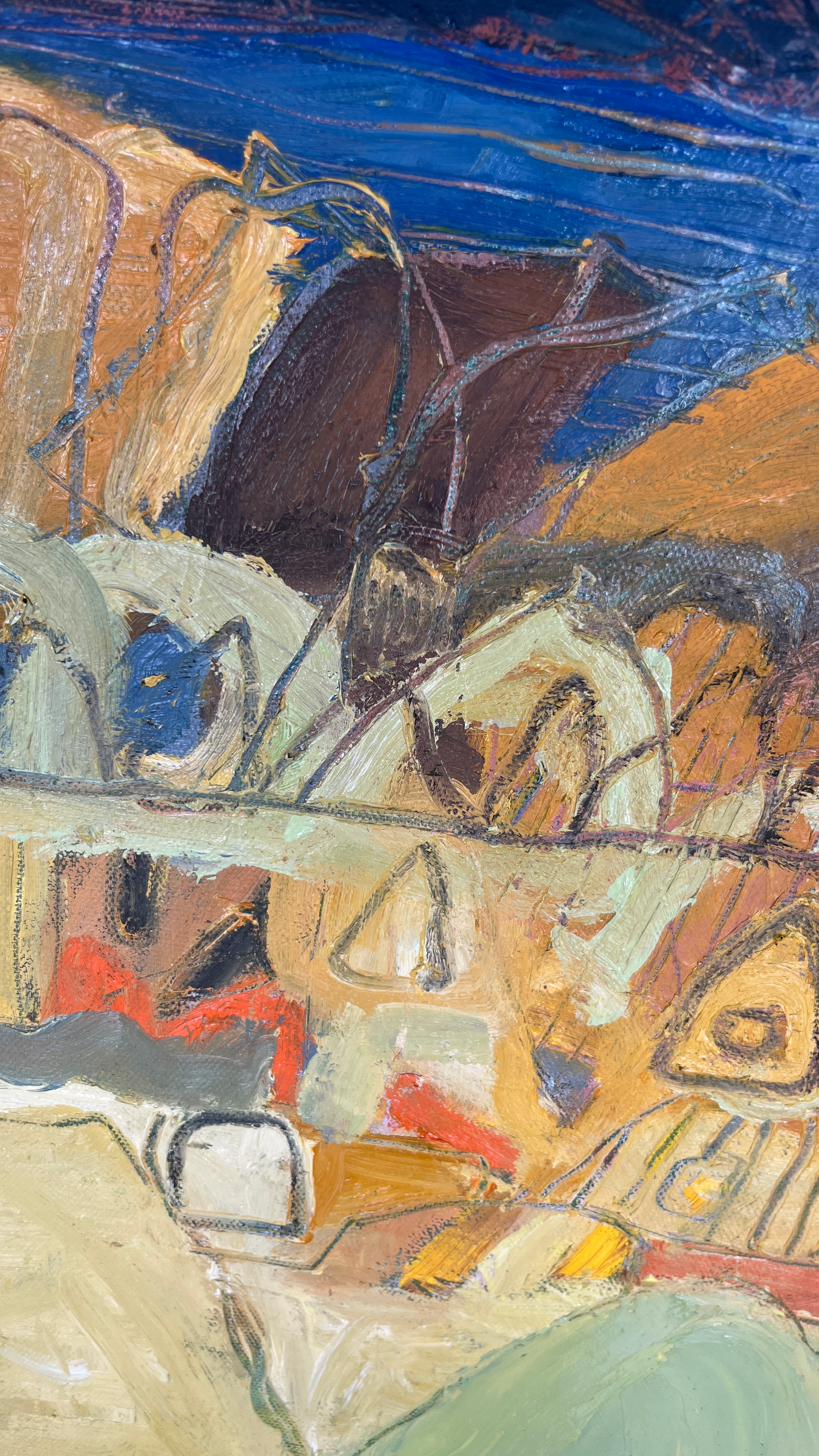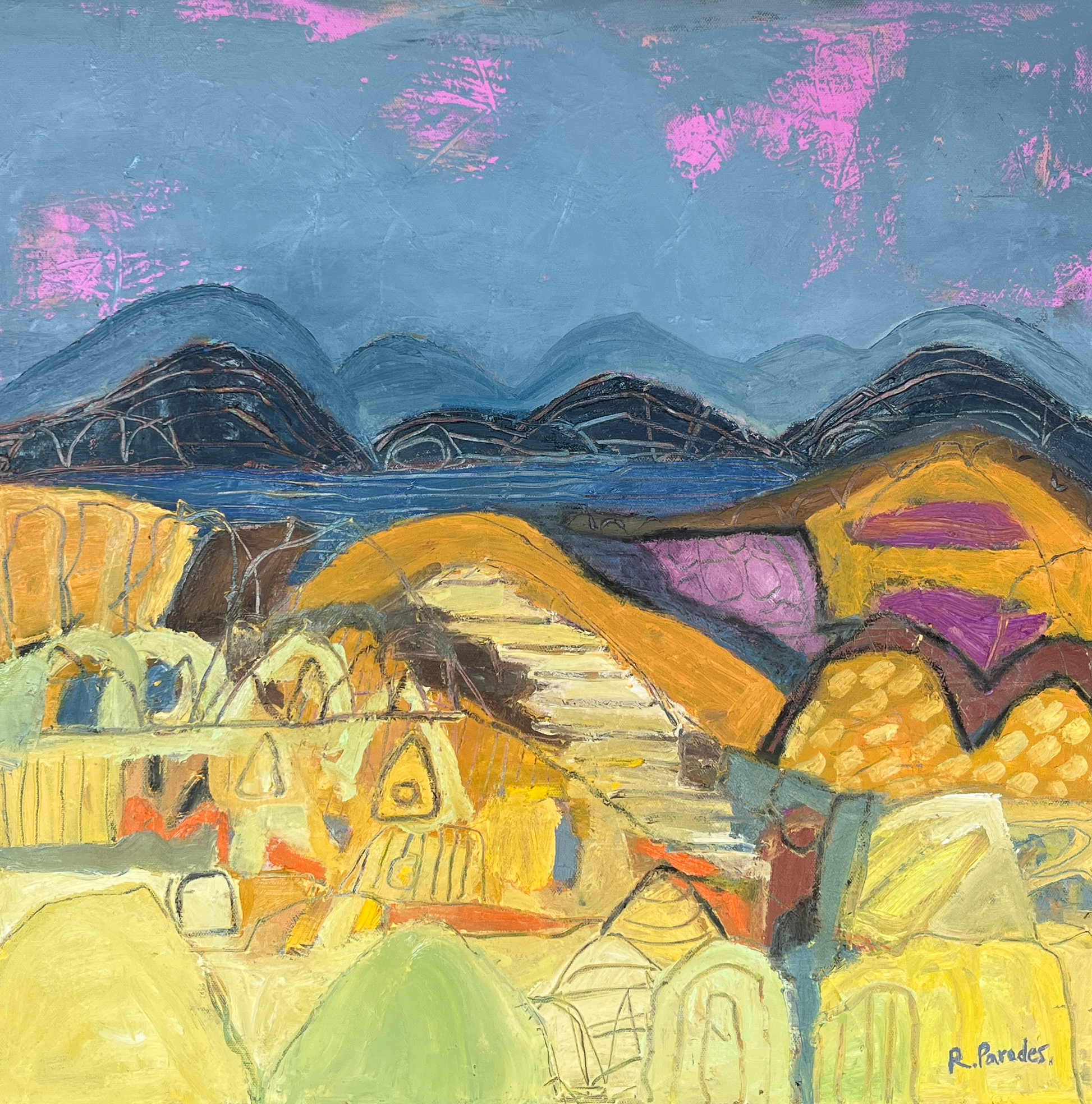 An original acrylic and oil piece painted on a stretched canvas 24"x 24" in (60.9 x 60.9cm). Unframed.