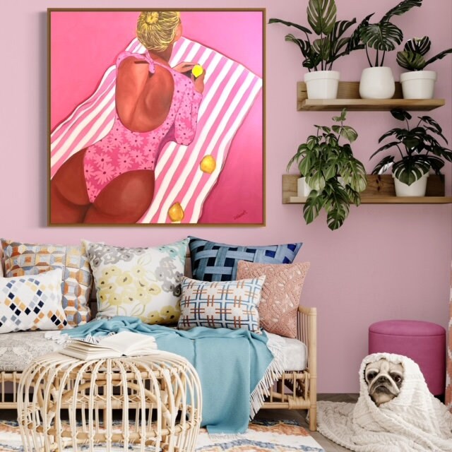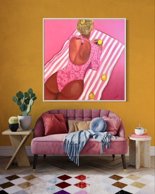 An original acrylic piece painted on a stretched canvas 36" x 36" in (91x91cm). Unframed.