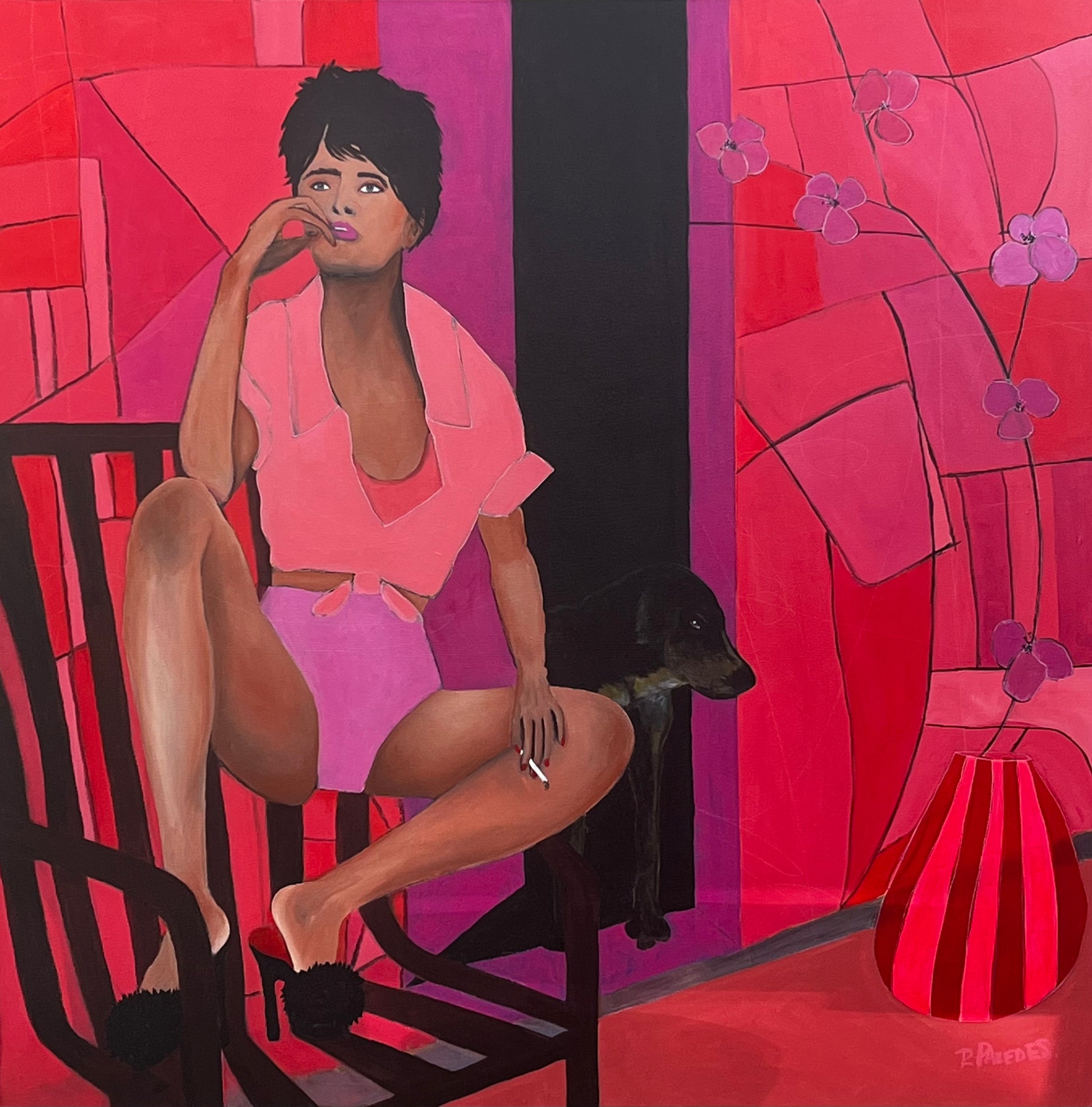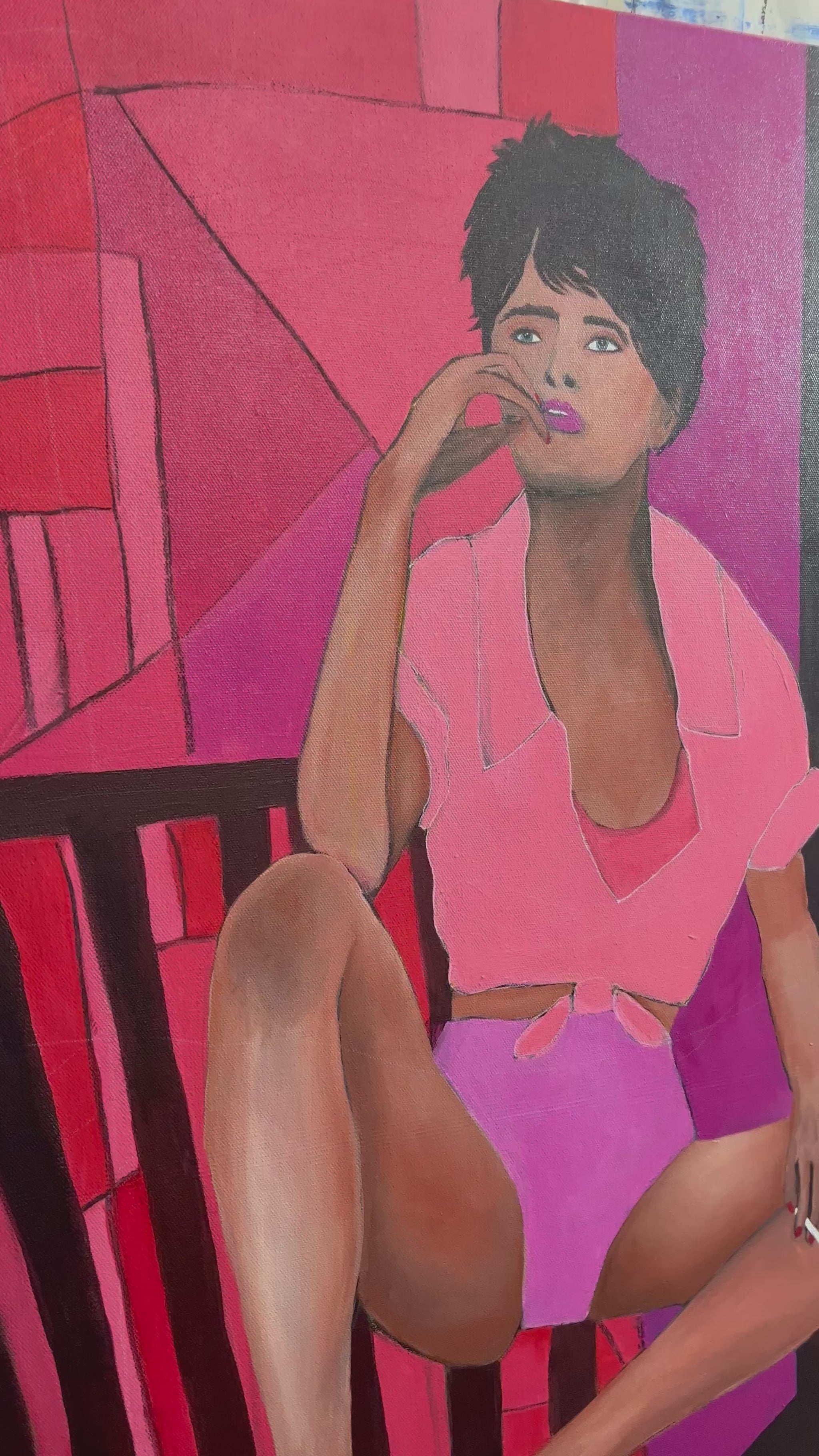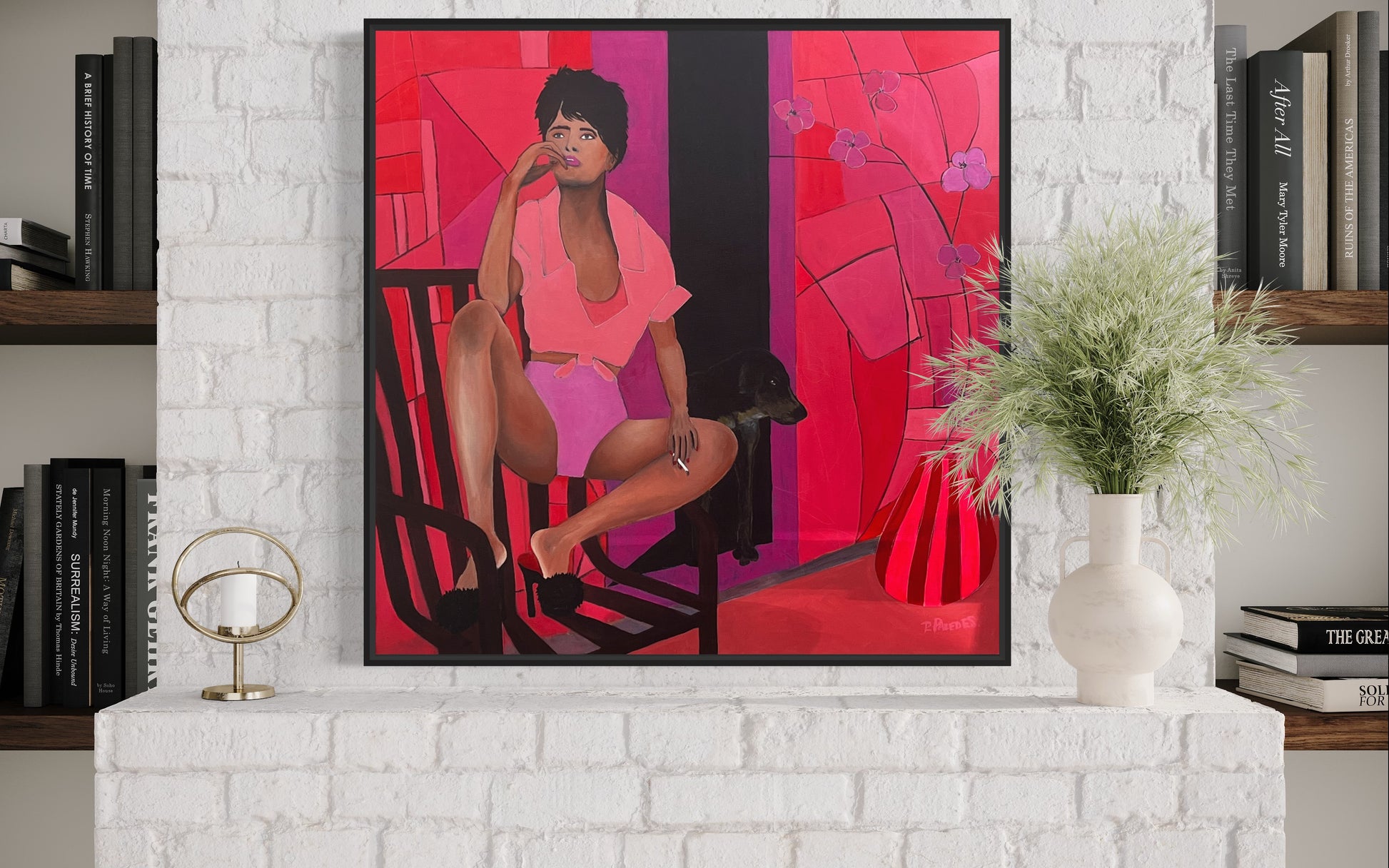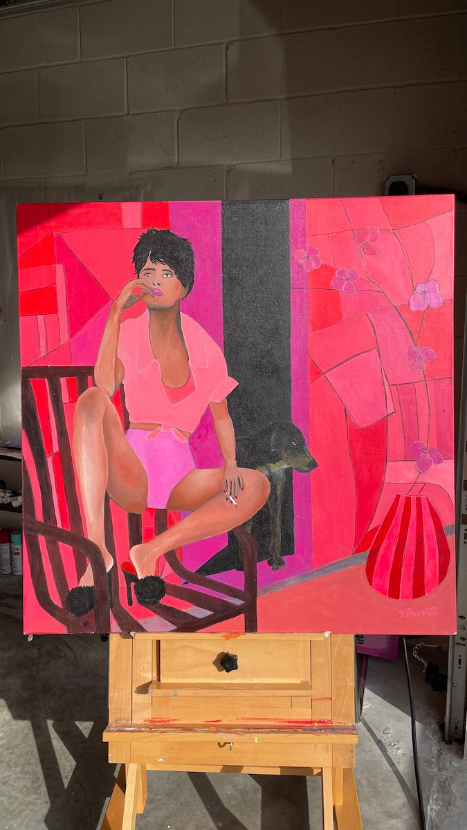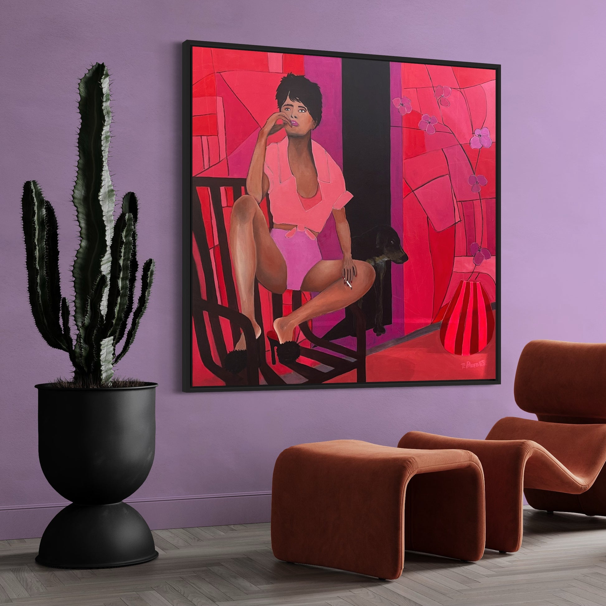 An original acrylic piece painted on a stretched canvas 36" x 36" in (91x91cm). Unframed.