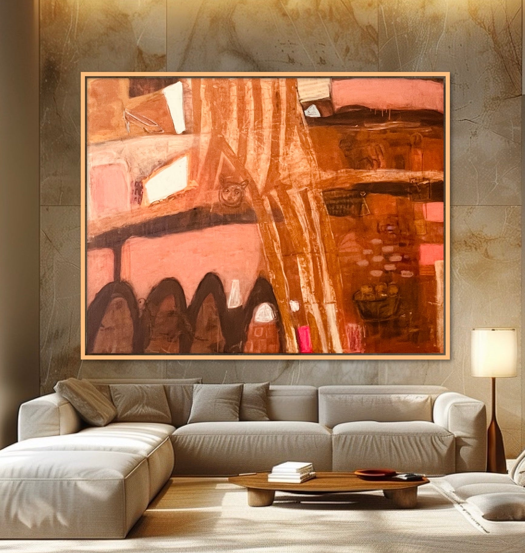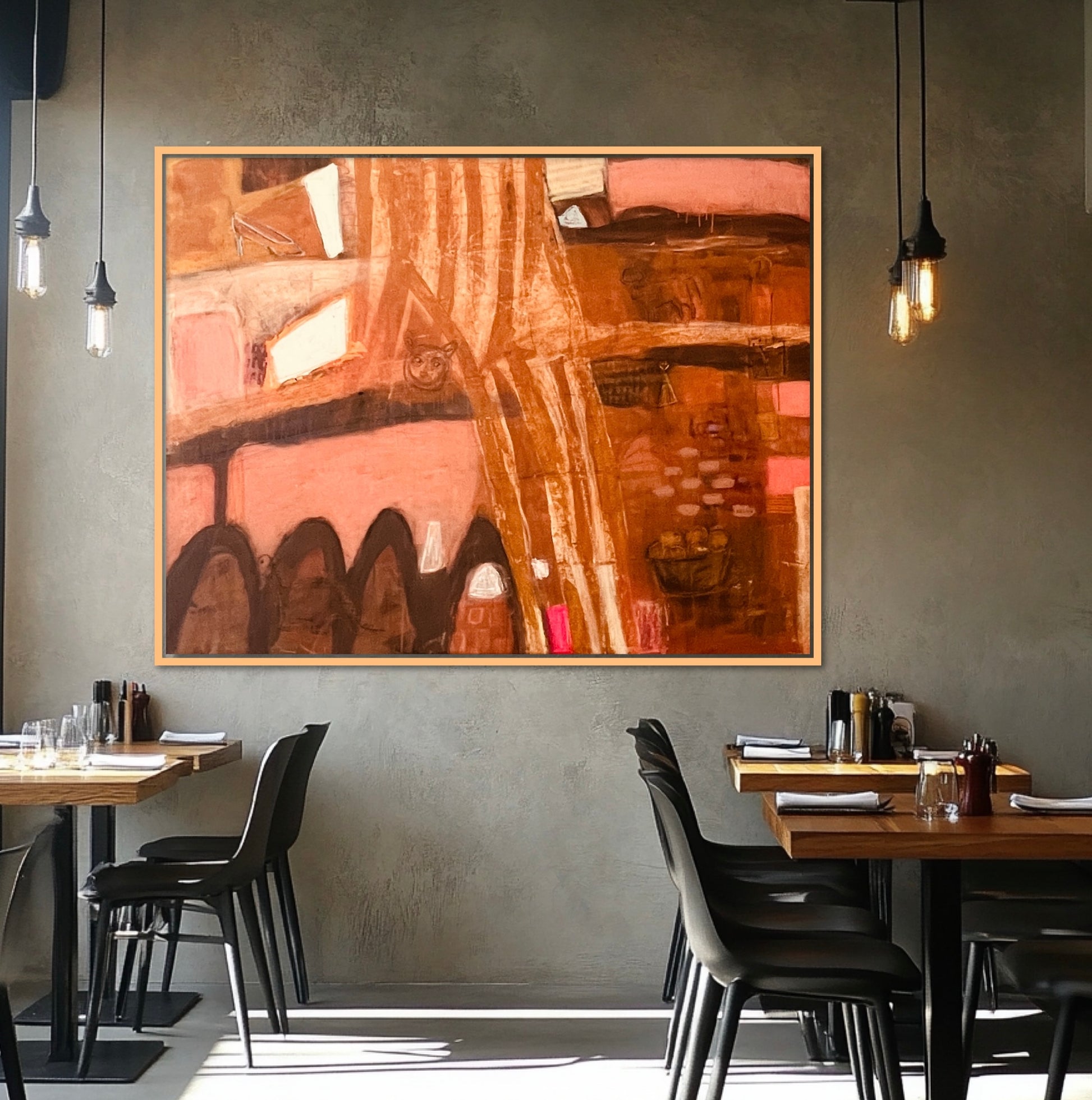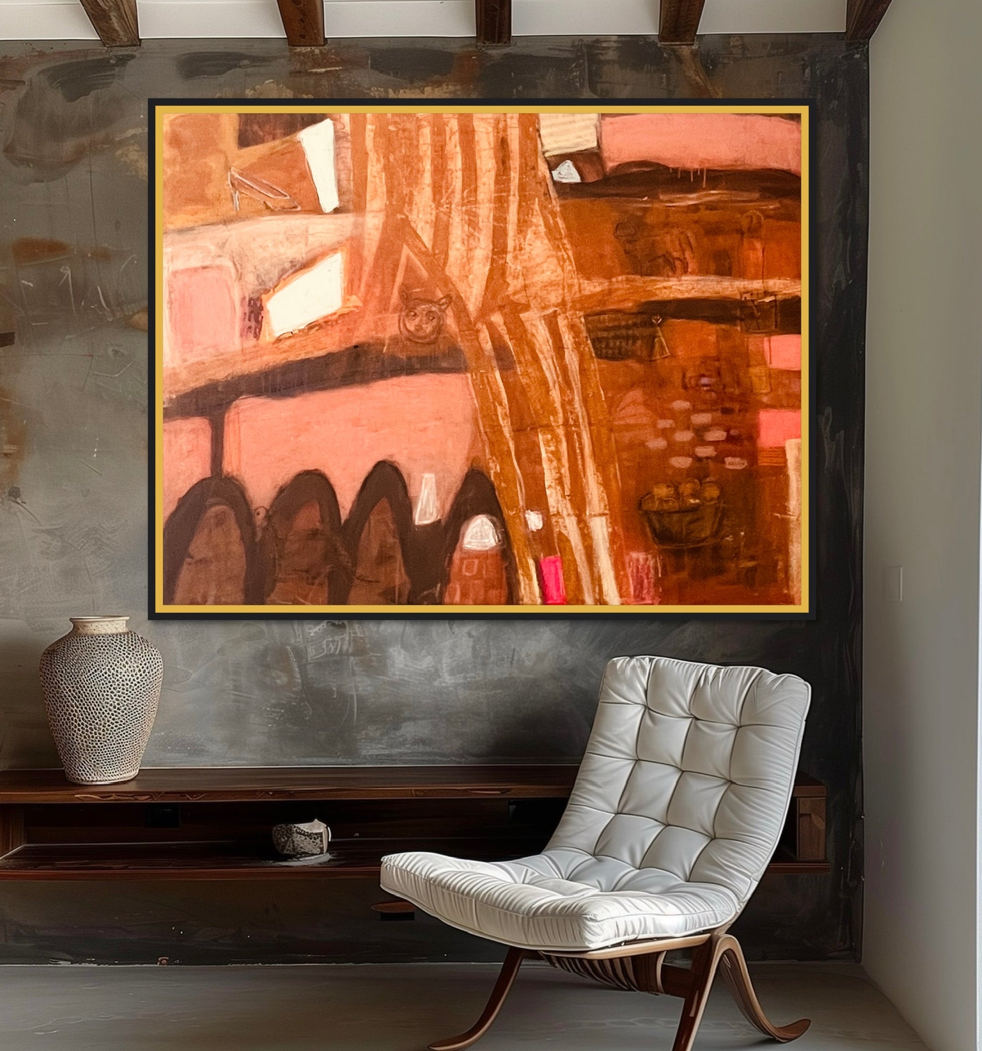 An original acrylic and oil oversize piece painted on canvas 60" x 46" in (152x117cm). Unframed.