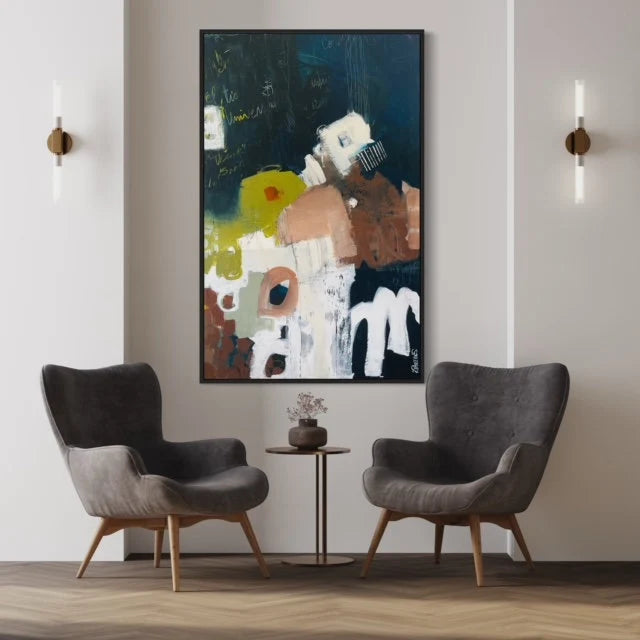 An original acrylic and oil piece painted on canvas 48" x 30" in (121x76cm). Unframed.