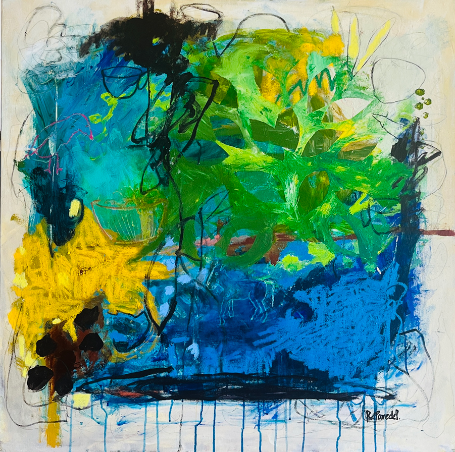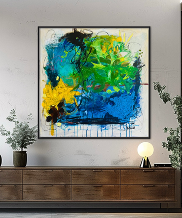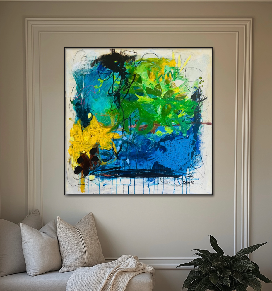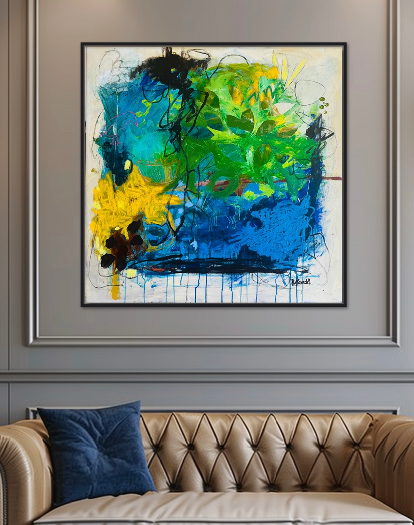 "The Wind" It is an original oversize oil piece painted on a stretched canvas 36"x 36" in (91 x 91cm). Unframed.