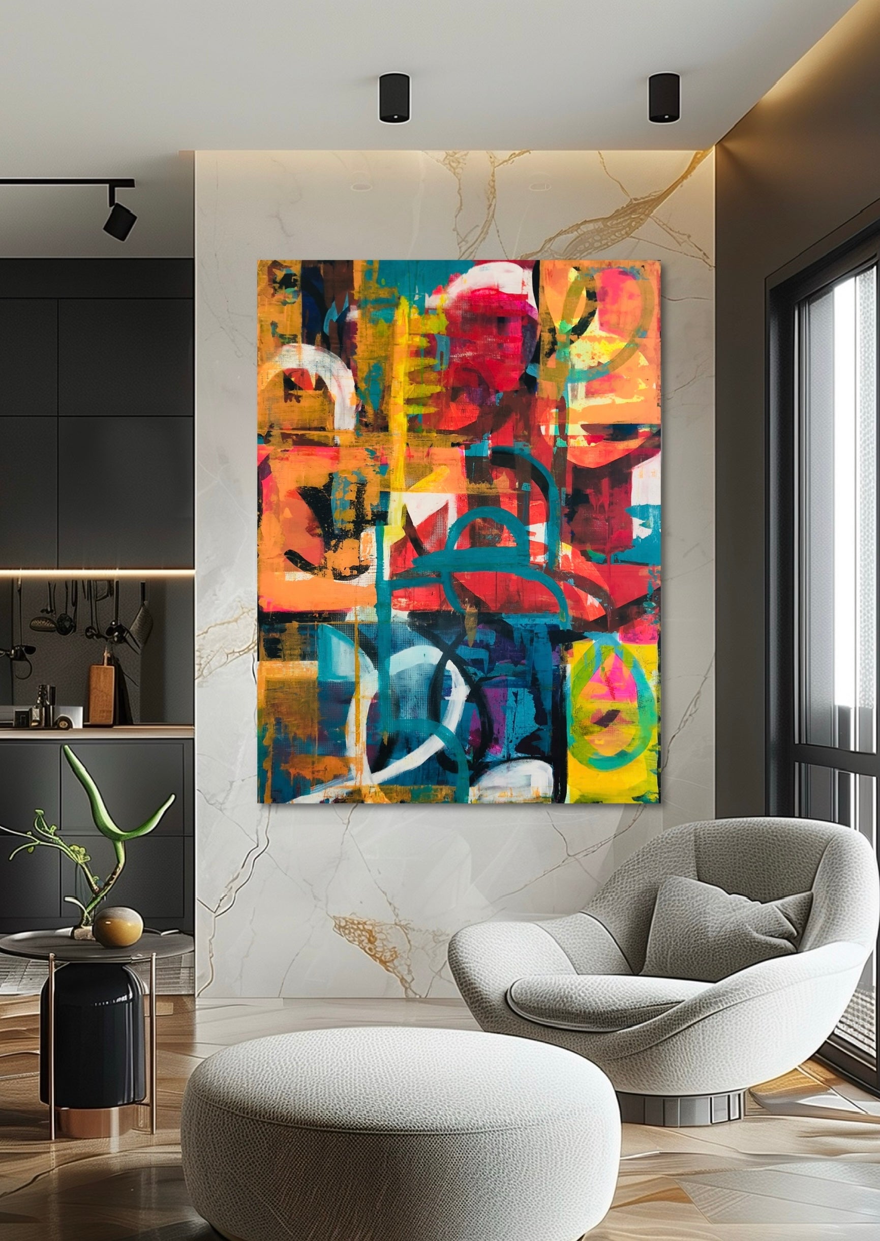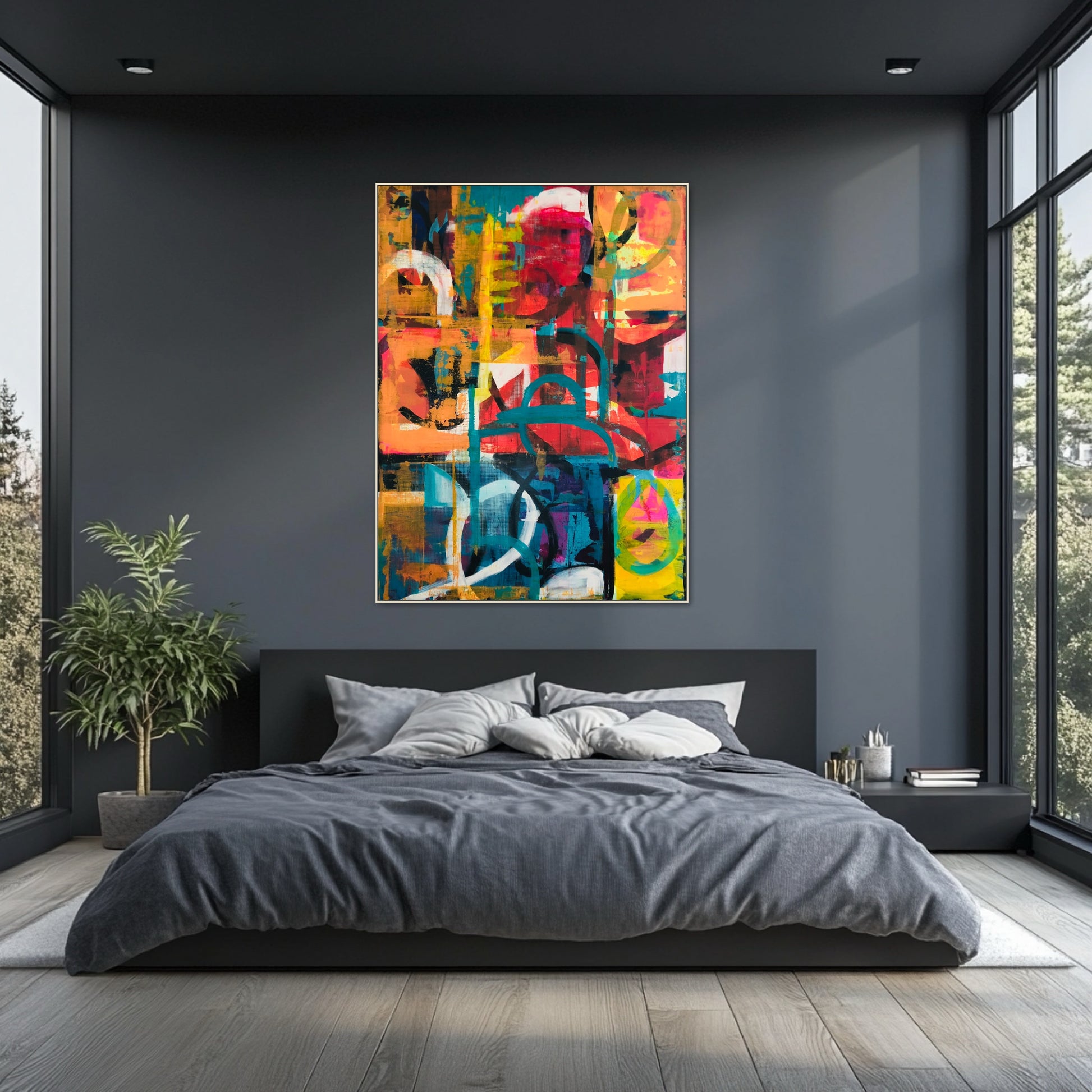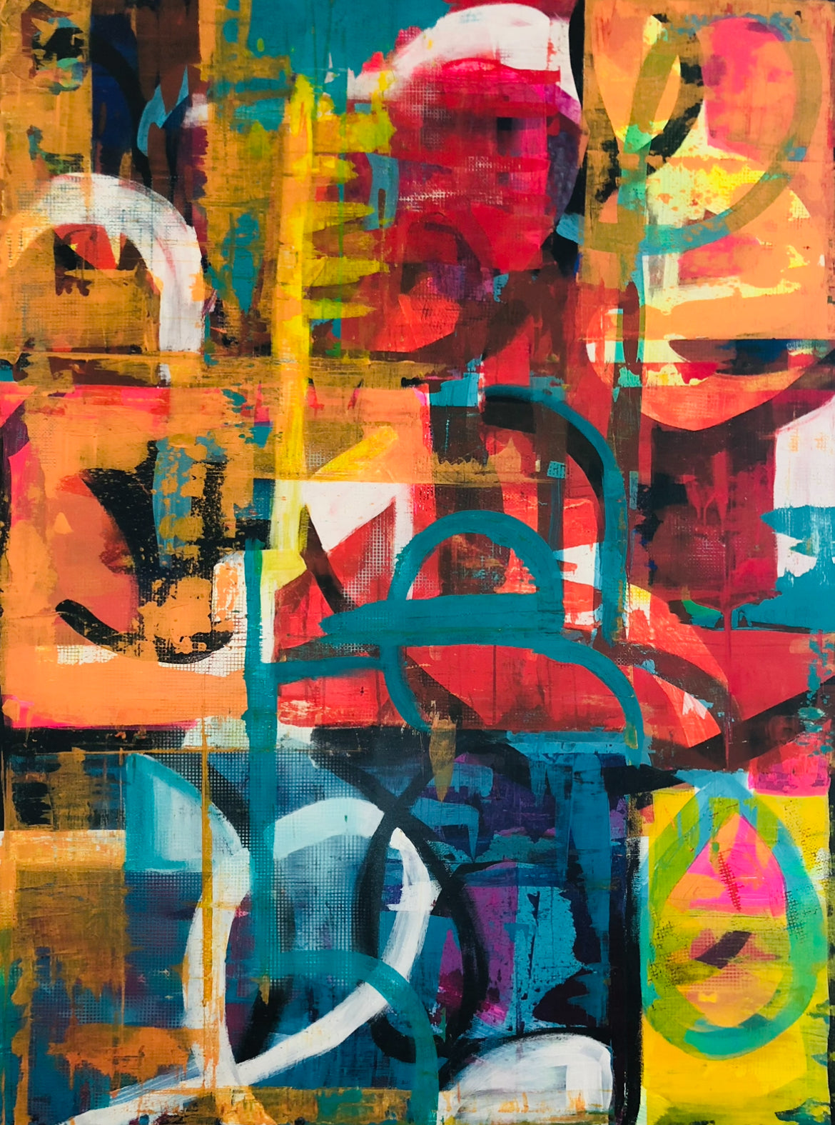 An original acrylic piece painted on a stretched canvas 48"x 36" in (121x91cm). Unframed.